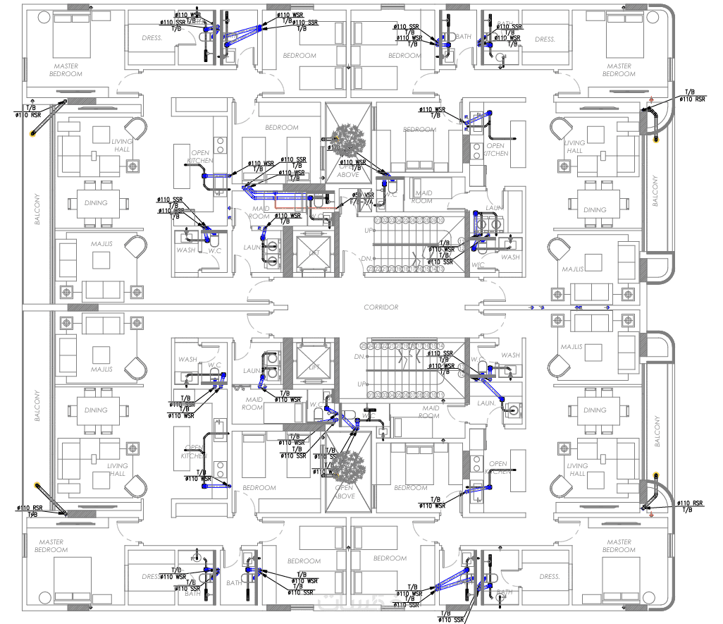 تصميم المخططات التصميميةوالتنفيذية شوب دراونج(Shop Drawings) لمخططات السباكة الصرف الصحى وتغذية المياه