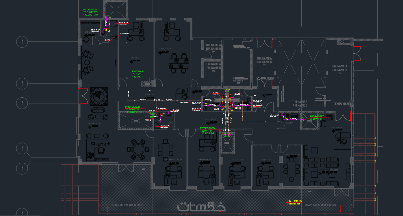 التنسيق مع باقى القسام والتأكد من عدم تعارض مسارات الأنابيب مع الأنظمة الأخرى