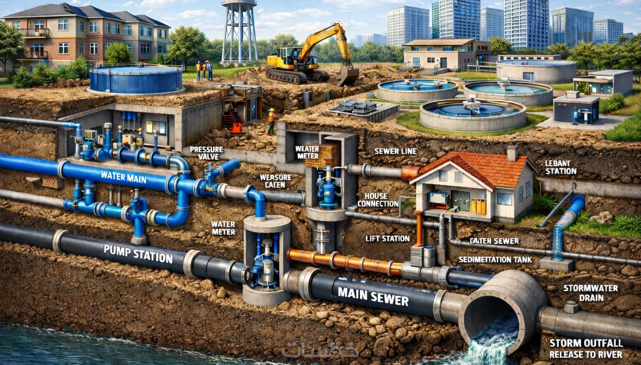 _ سيتم تقديم خدمة التصميم شبكات الخارجية لمياه الشرب أو الصرف الصحي وحساب أقطار الأنابيب على برنامج الإكسل لكل ٥٠٠ متر طولي مقابل سعر الخدمة.