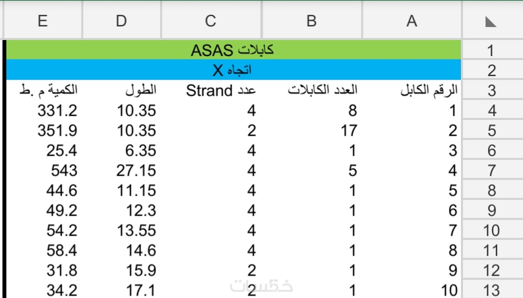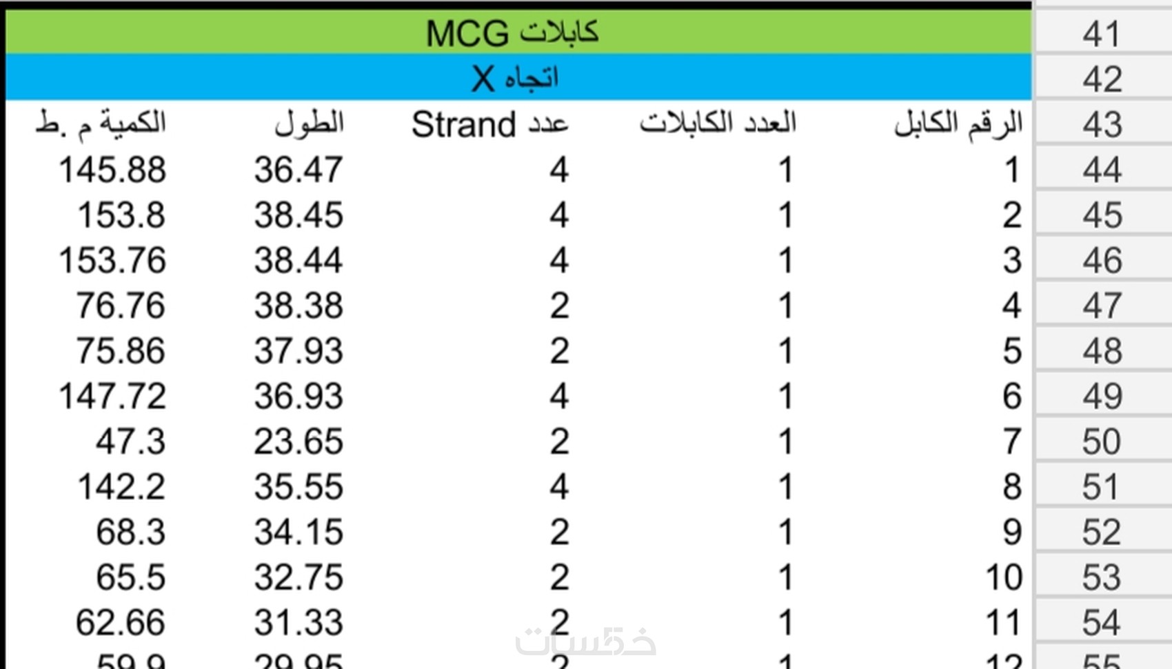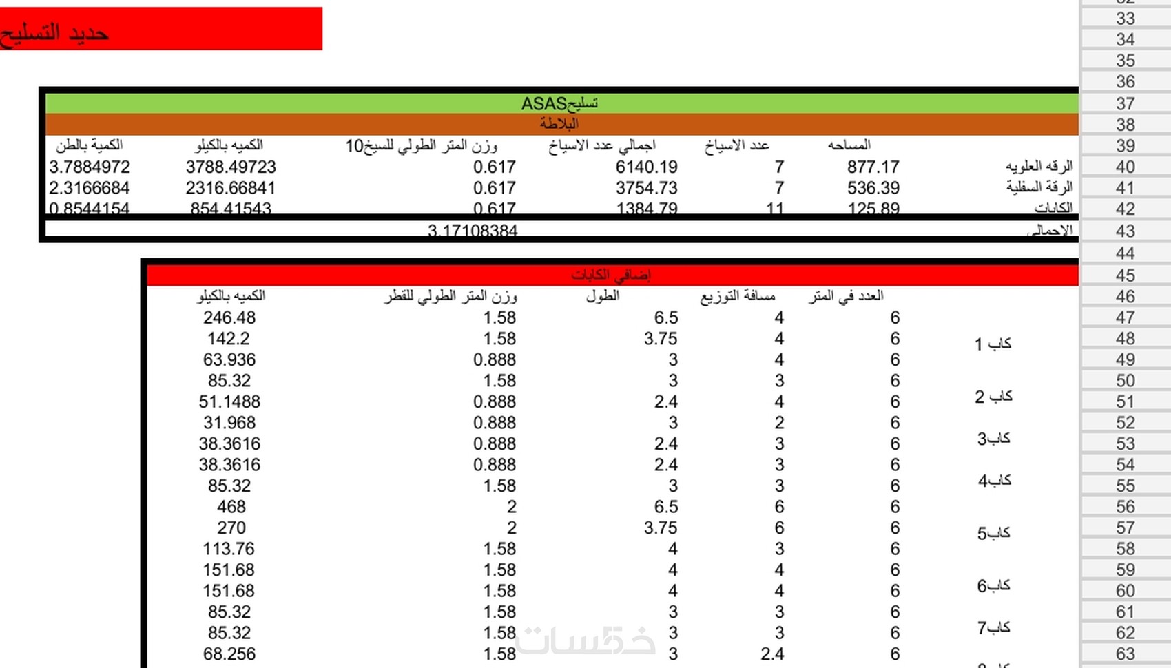 يتم حصر جميع العناصر الأنشائية (الأساسات بجميع أنواعها-الأعمدة-الكمر-البلاطات)ويتم الحصر تفصيليا في شيتات Excel بدقة عالية ويتم عمل الشيتات بناءا علي المخططات النهائية الاتوكاد التي يتم أرسالها من قبل العميل