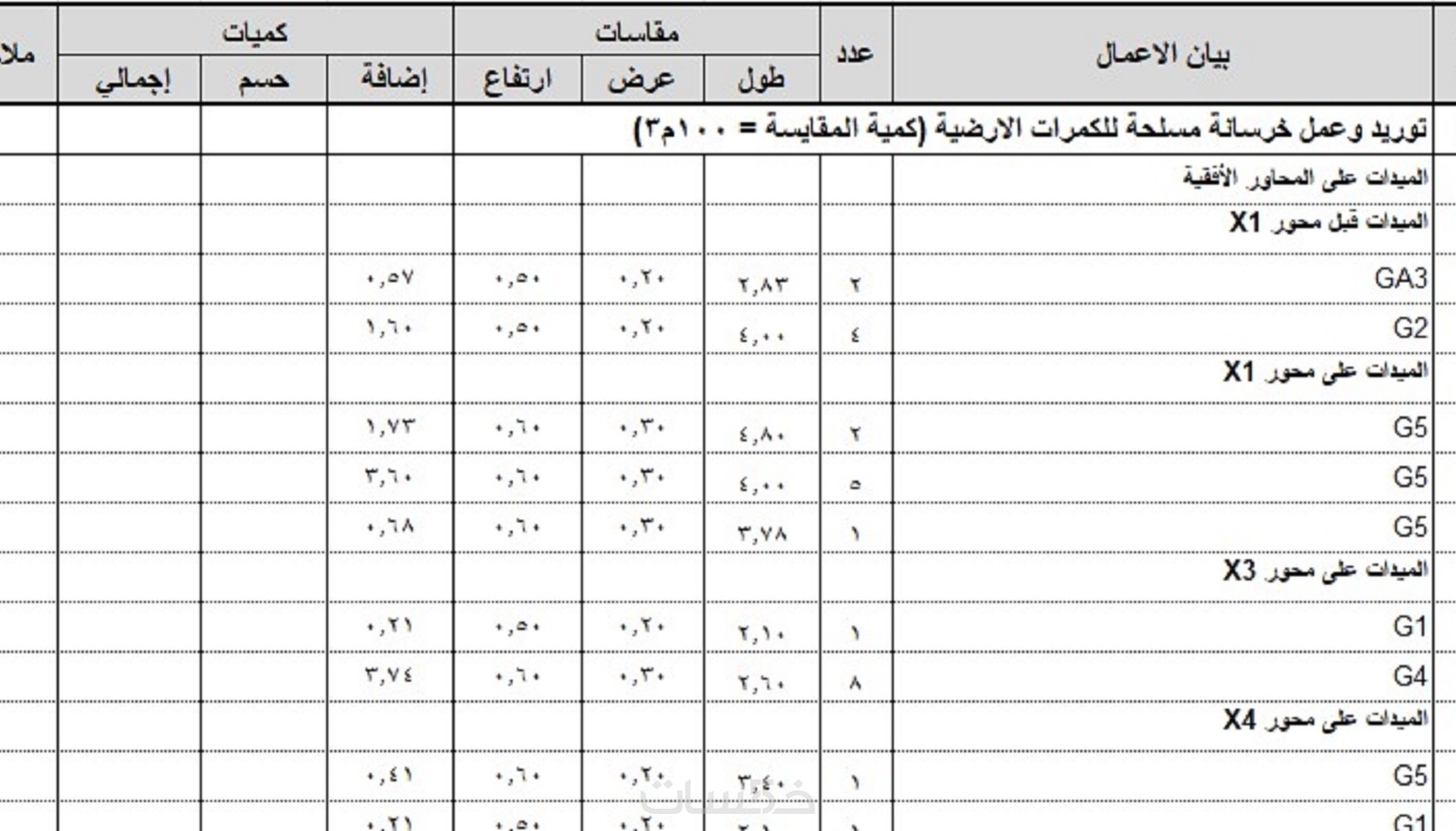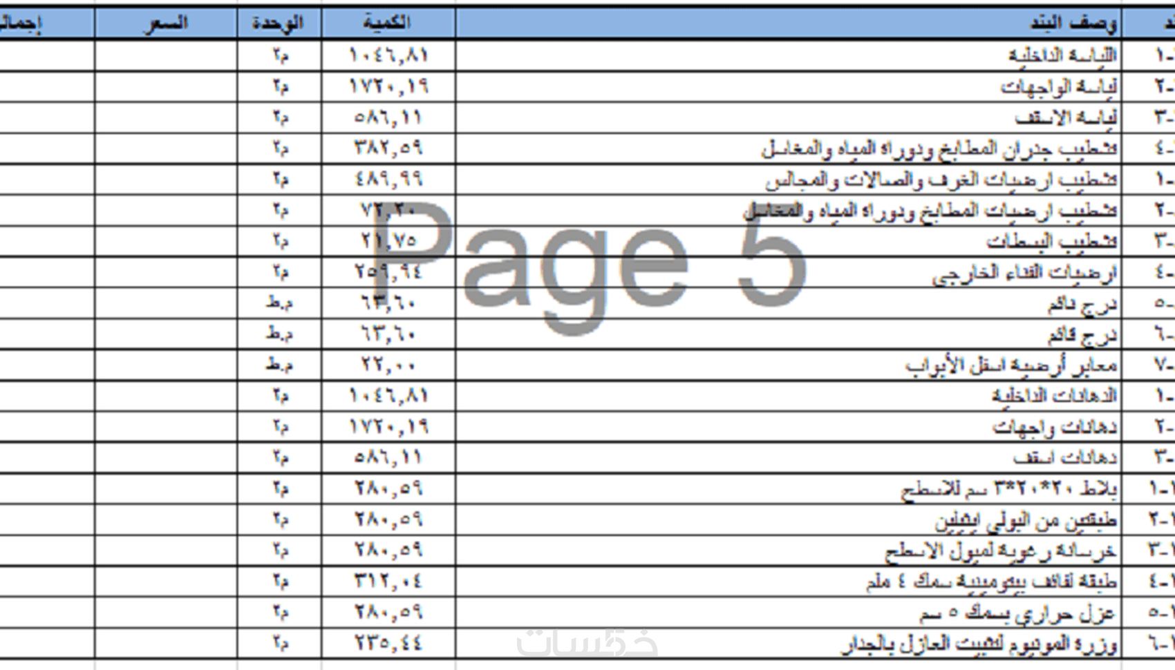 اضافة حساب كميات لاربعة ادوار بمساحة 500 م2 لكل دور