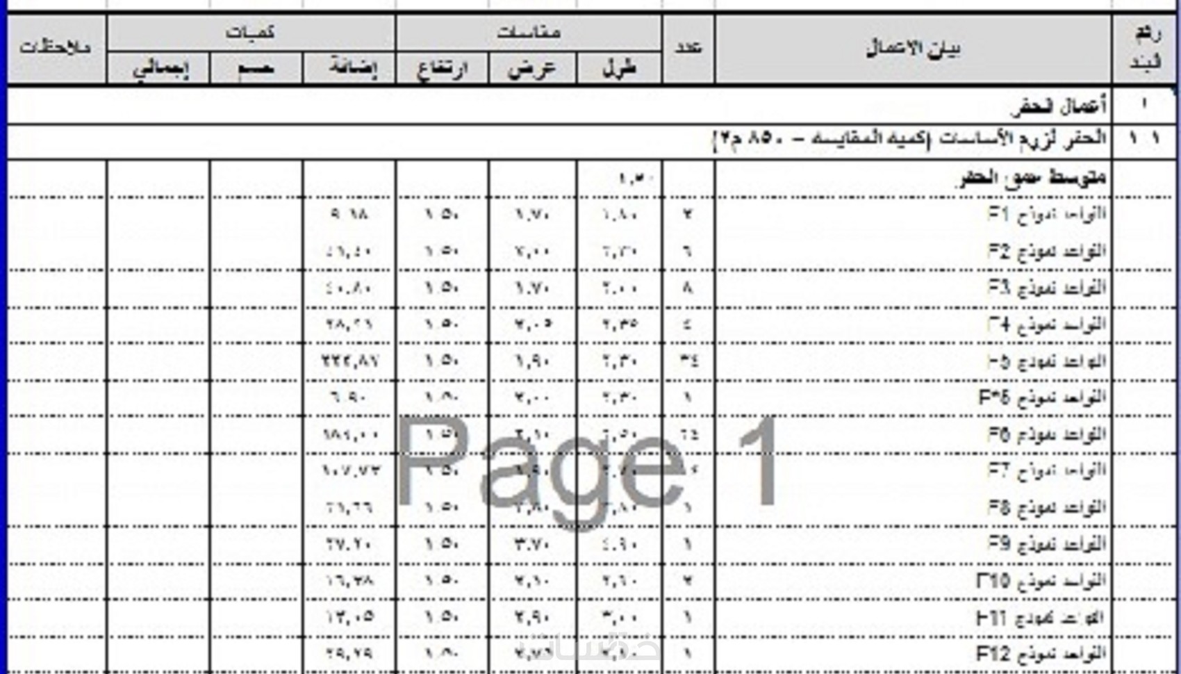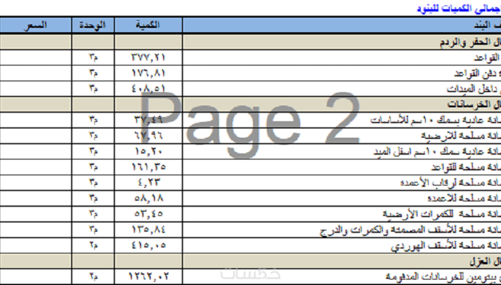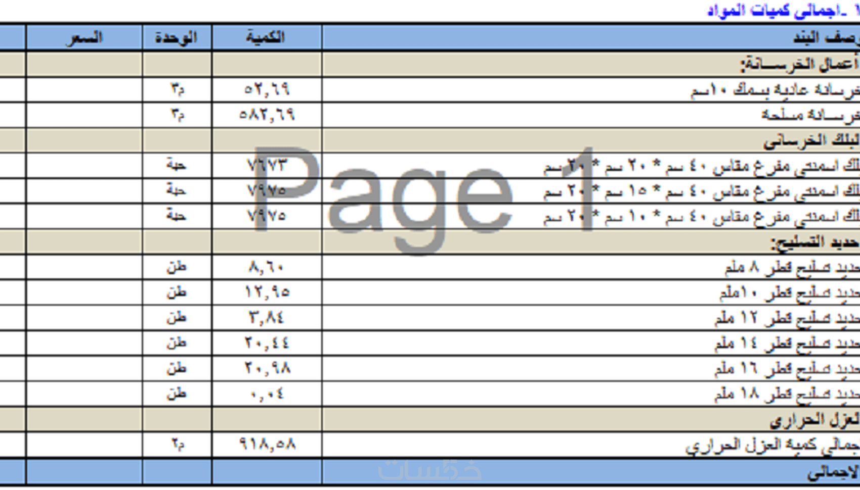 اضافة حساب كميات لمساحة 1000 م2 اضافية