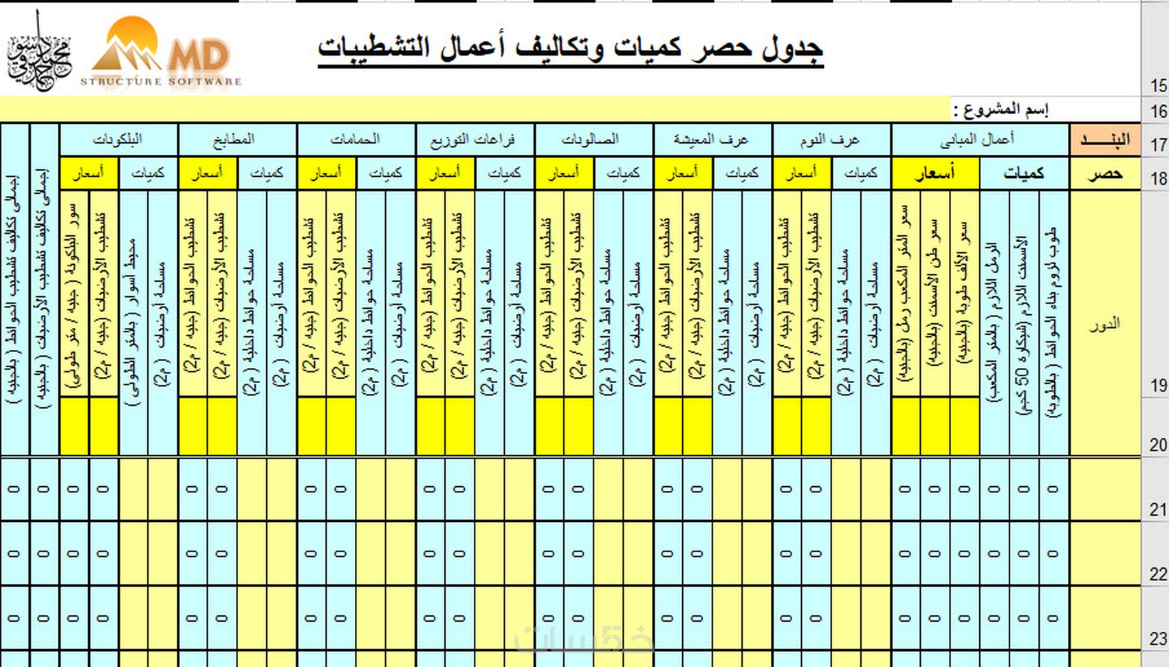 أعمال حساب كميات وتسعير للمباني السكنيه (عمارات او فيلات او معارض وبنية تحتيه)