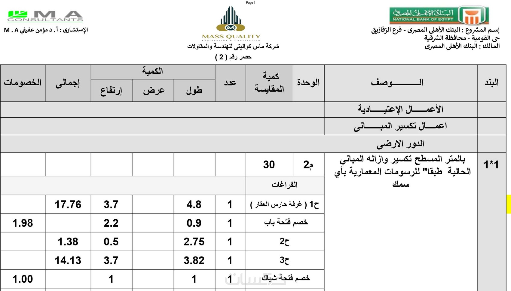 يمكننى عمل تسعير للمشروع حسب الأسعار الحالية ( أعمـال إعتيادية - أعمال كهروميكانيكية )
