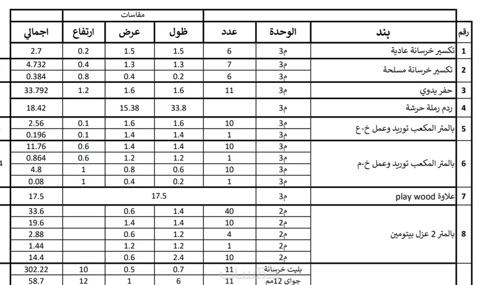 - او حساب كميات البند في التشطيبات لكل 200 متر مربع.