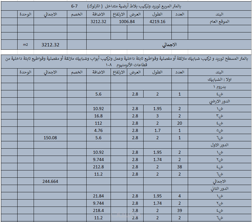 وكذلك اذا كان الحساب الذي ترغب به جزئي لمجموعة فقرات مثل الخرسانة فقط او الطابوق والخرسانة فقط وهكذا...
