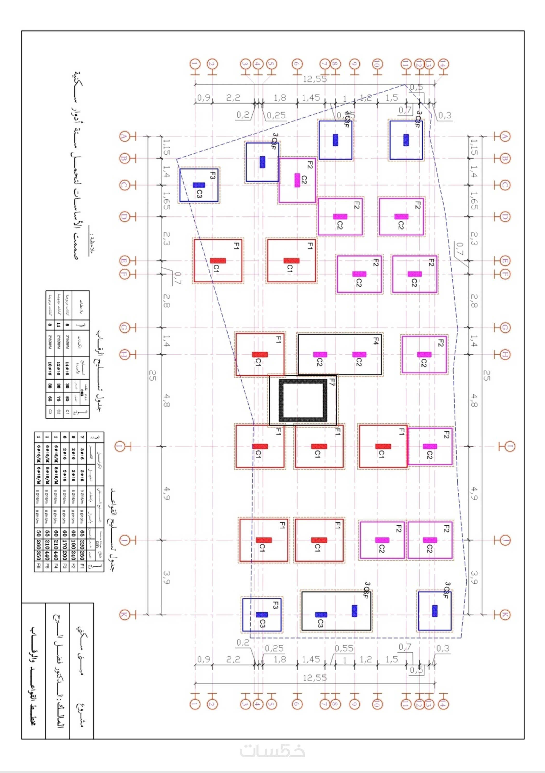 1- رسومات إنشائية كاملة بصيغة PDF + AutoCAD.