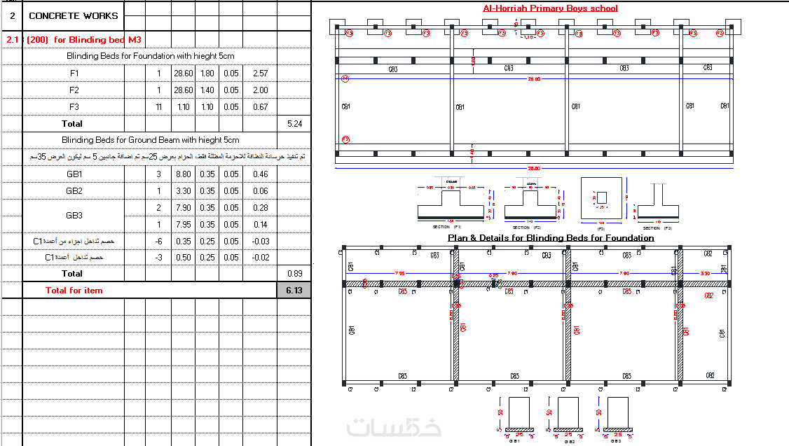 سيتم حصر كميات للاعمال المنفذة وذلك حسب معلومات من المشتري حيث سيتم تنفيذ ملف احترافي للكميات موضحة بالمخطط مقابل لها في نفس الصفحة.