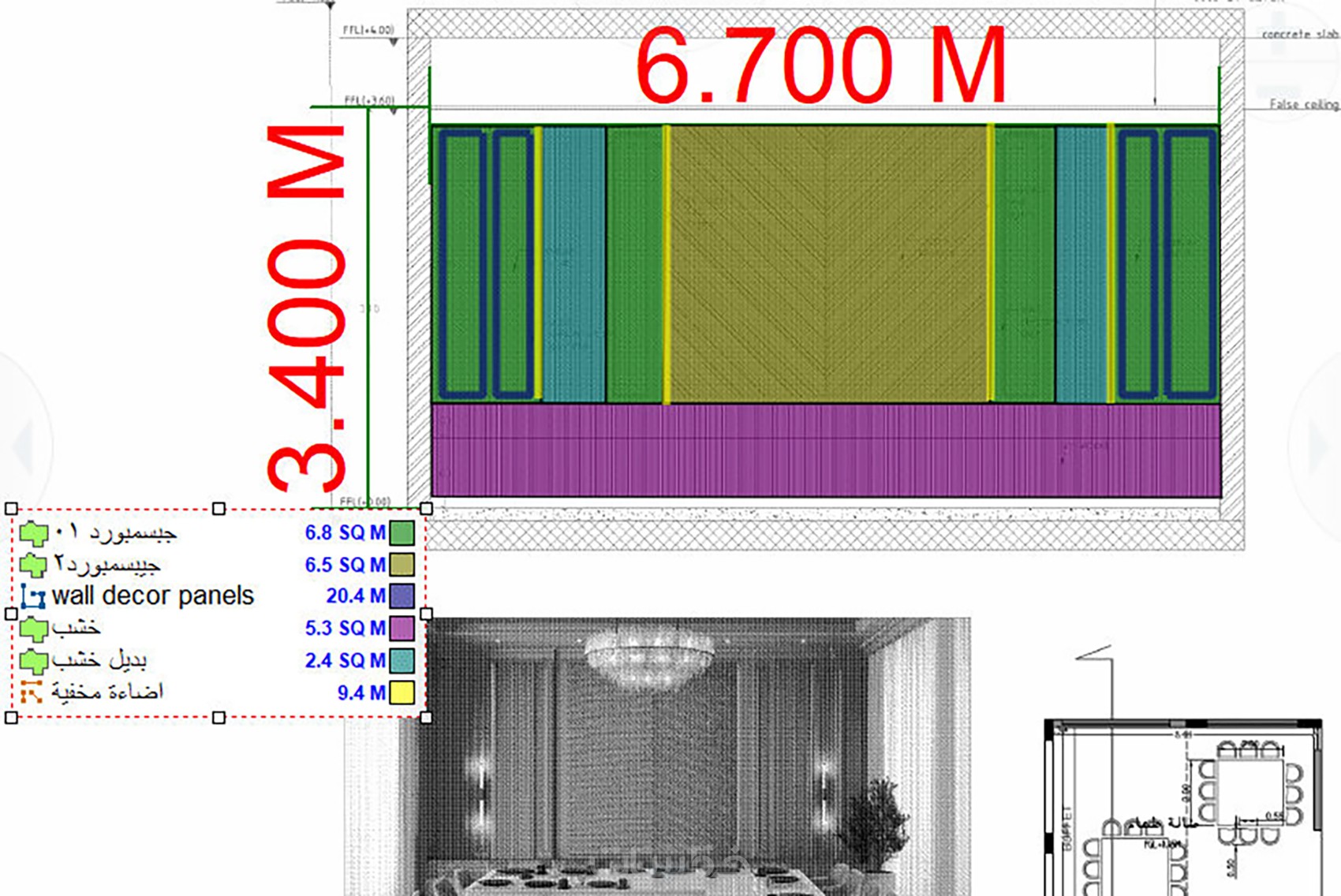 سأقوم بحساب كميات المواد لمنزلك او مشروعك بداية من كميات الحفر والردم واعمال الهيكل الخرساني والتشطيبات وتقفيل المباني وتسلميها في شكل جدول نهائي يمكنك عرضة على جهات التنفيذ سواء أكان مقاول او شركة متخصصة وعمل العطاء اللازم، الجداول ستكون اثنين واحد للهيكل الخرساني والاخر للتشطيبات, وتقسيم الجداول لكل طابق على حدا.