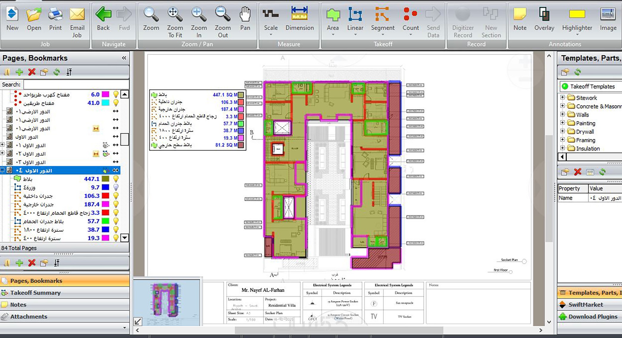 *حصر كميات شامل ودقيق *استخراج كميات جميع بنود الأعمال المعمارية والتشطيبات بدقة عالية.