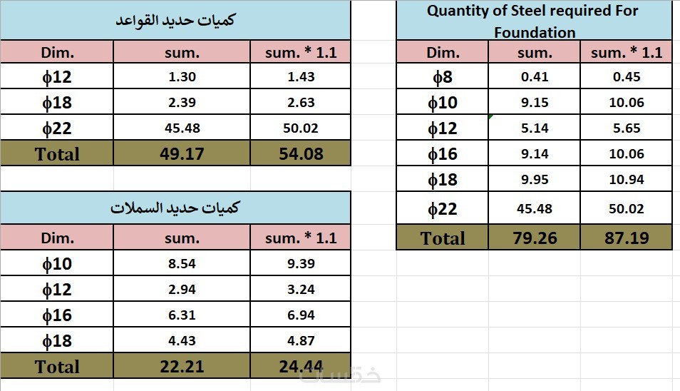 * يتم تقديم جداول تجميع الكميات و تقديم الحسابات التفصيلية للكميات على شكل pdf و ملفات إكسيل للتسعير.