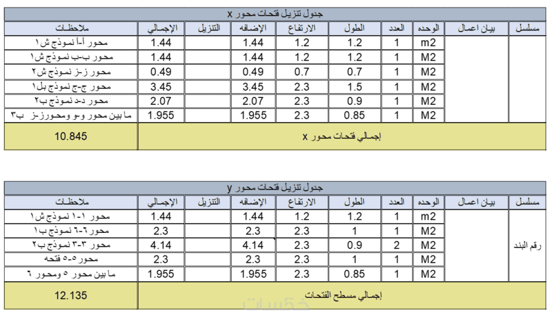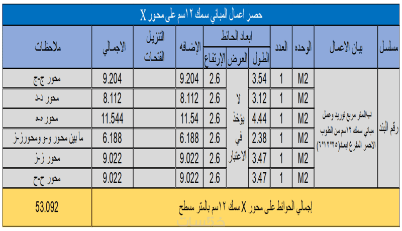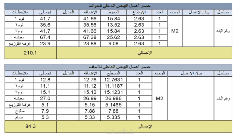 حصر كميات لمساحه حتى 100 متر مربع
