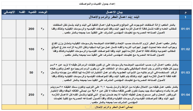 مراجعة الكميات طبقًا للرسومات