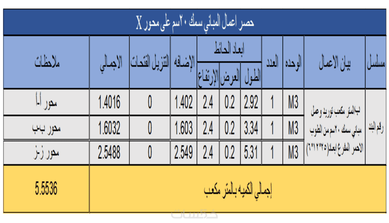 حصر كميات الخرسانة والحديد والتشطيبات