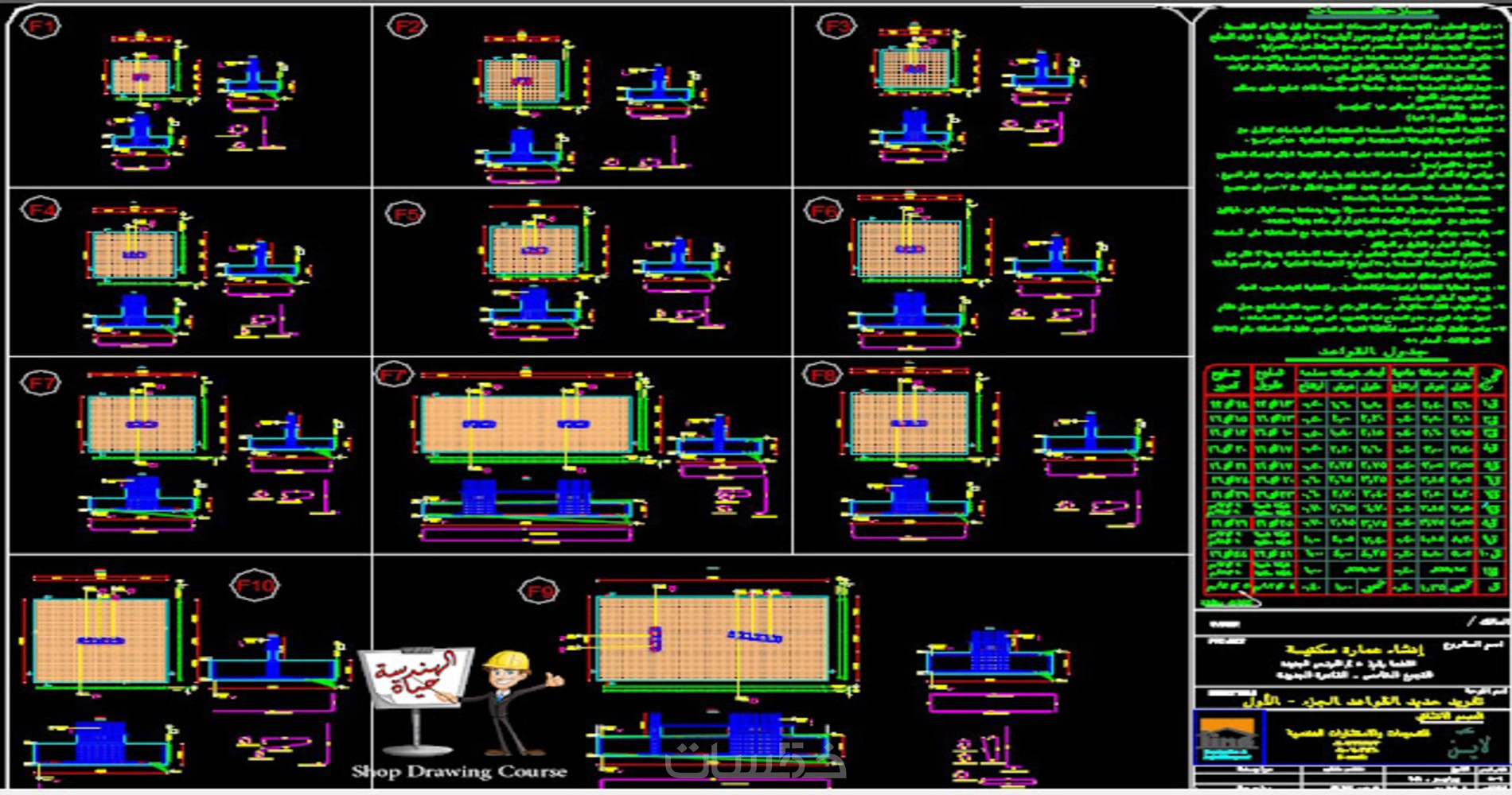 رسم لوحات الكاد وتحويل ملفات الPDF الي CAD ورسم تفاصيل تسليح الحديد باستخدام برنامج ASD