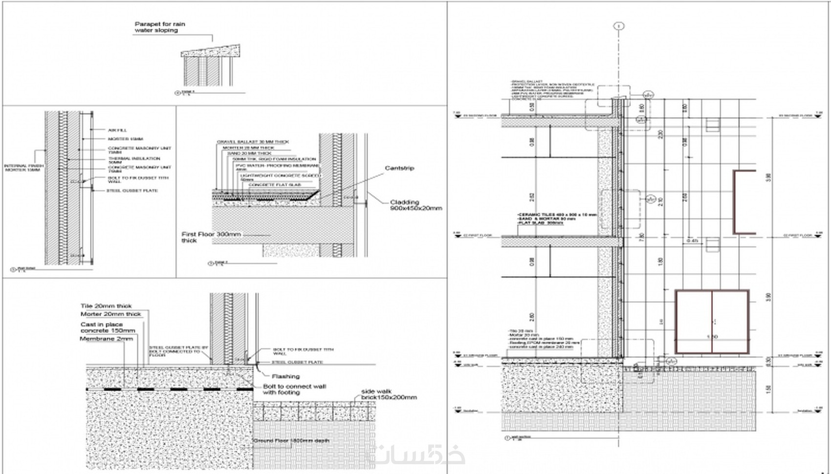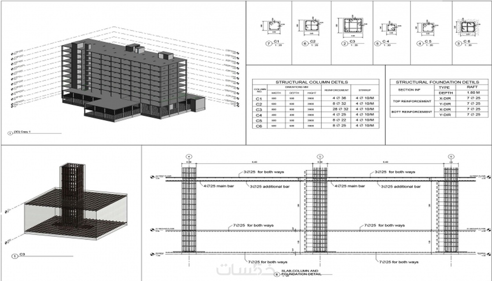 3. تصميم الانشائي:مساقط افقية،النظام الانشائي مع الحسابات(فلات،سوليد،ريبد سلاب+بيم+الاعمدة،قواعد)