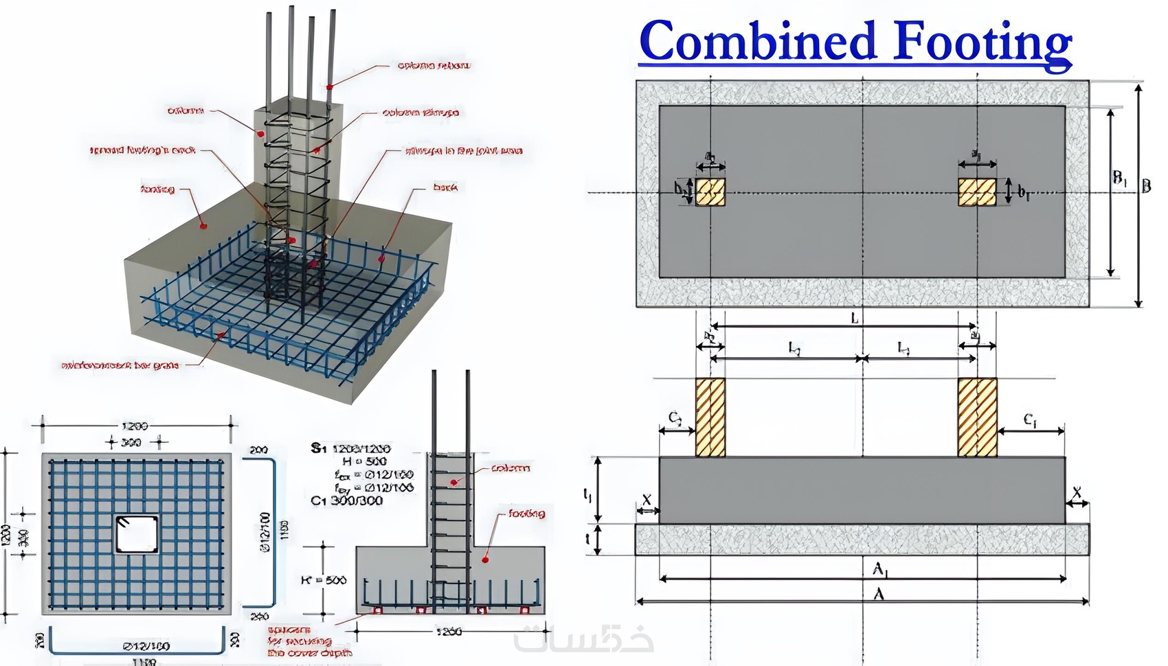 1 - لوحات Concrete Dimensions لكل العناصر الأنشائية في المشروع