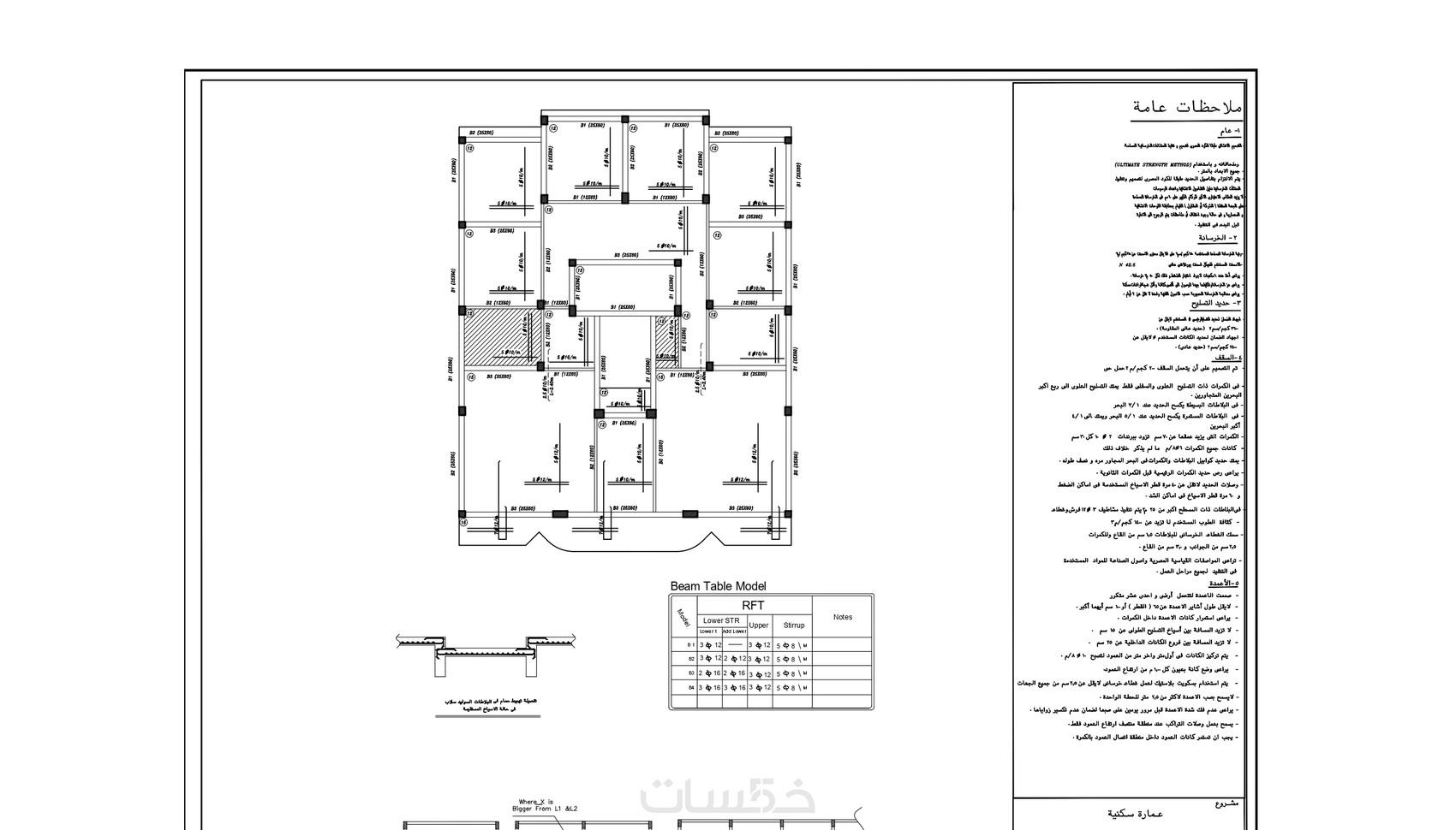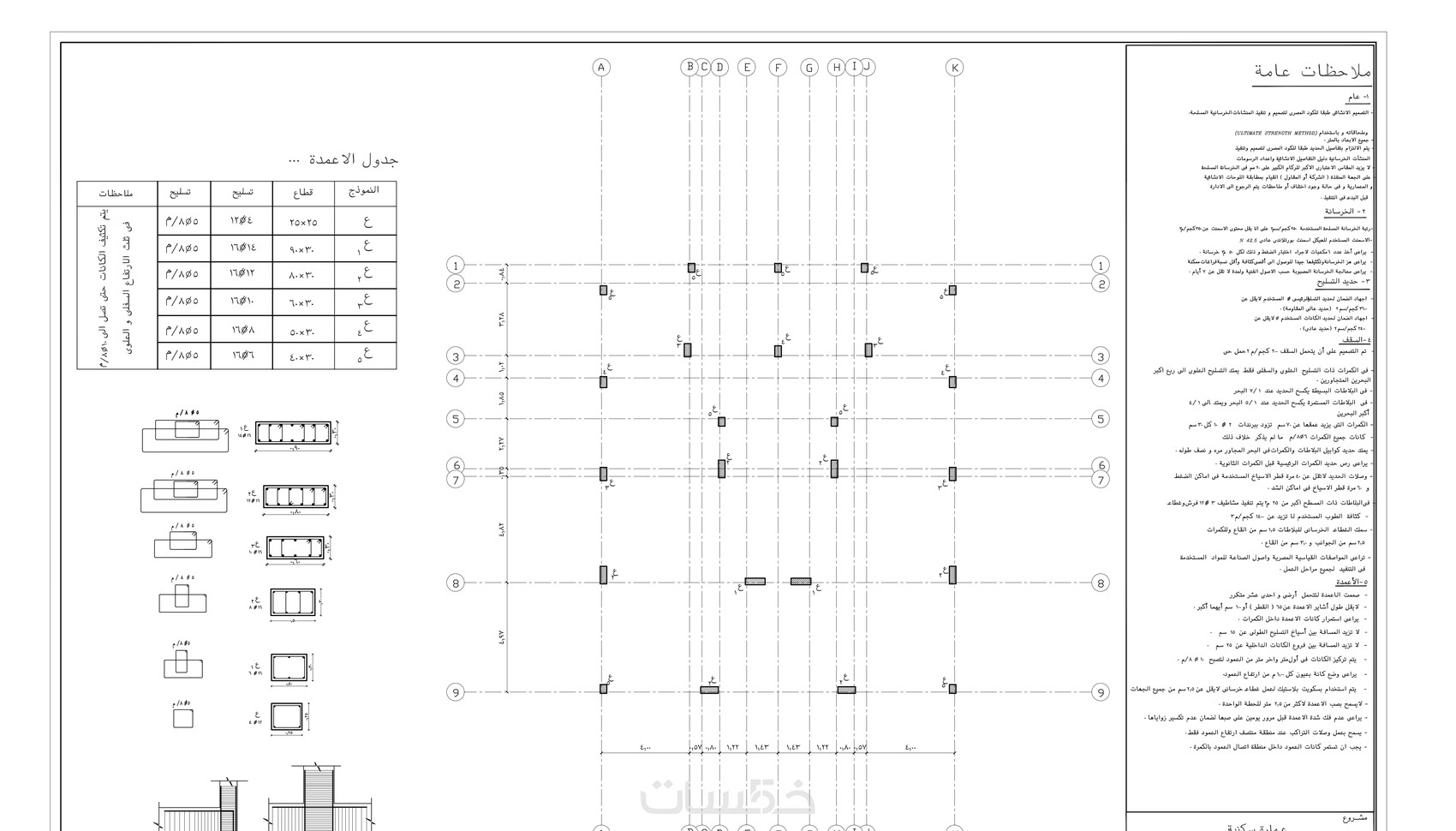 تصميم وحساب ورسم المخططات الإنشائية (مساقط افقية,مقاطع,تفاصيل,جداول تسليح) بسرعة ودقة عاليتين