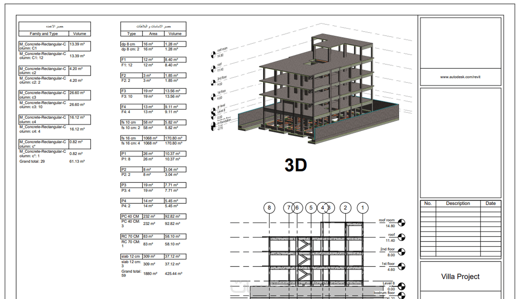- كما يمكن عمل حصر كامل للعناصر الانشائيه وتسعير لها و ذلك باستخدام برنامج الريفيت مقابل خدمه اضافيه.