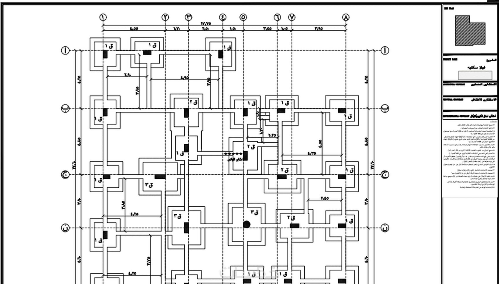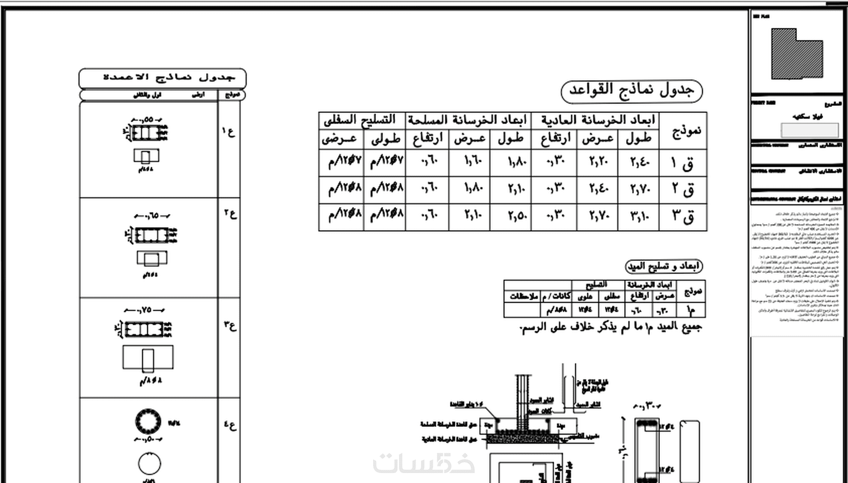 3- لوحة التفاصيل وجداول التسليح للاعمدة والاساسات