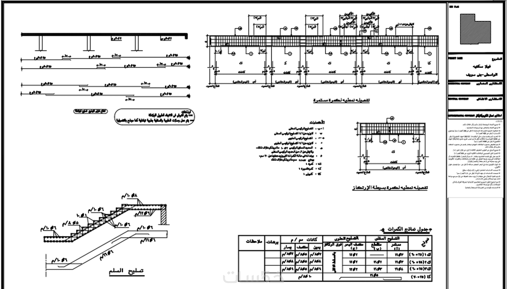 5- لوحة التفاصيل وجداول التسليح للاسقف والكمرات