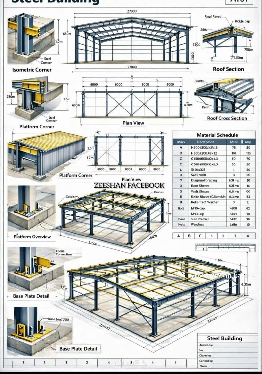 (وزن المنشأ الكلي - القطاعات المستخدمة - قائمة بأنواع المسامير...الخ )