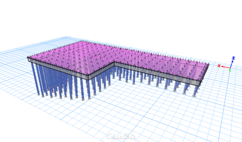 النمذجة على برنامج SAFE الشهير من شركة CSI، هذا البرنامج مختص في تصميم جميع أنواع البلاطات (مصمتة - مفرغة - فطرية - الخ..) والأساسات (منفردة - مشتركة - شريطية - حصيرة فطرية - حصيرة ذات جوائز بارزة - الخ..)، تتضمن نمذجة وتحليل وتصميم وإختيار الأبعاد النهائية للعناصر الإنشائية المختلفة، ووفق أحدث الأكواد العالمية ACI318 و ASCE7.