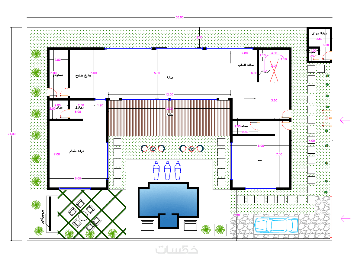 مساحة تصل الي 100 متر مربع