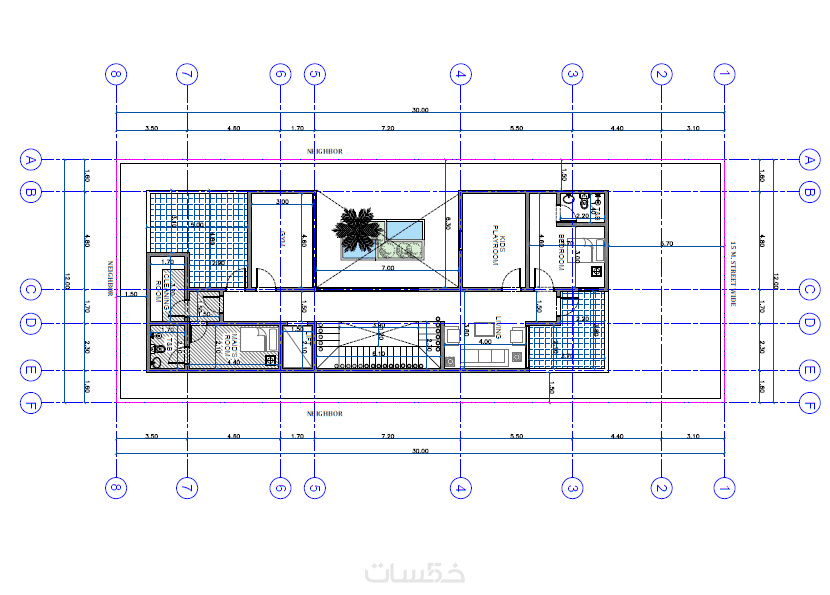 مقابل قيمة الخدمة الأساسية سأقوم برسم المخططات الإنشائية لمبنى بمساحة إجمالية لكل الأدوار 50م2