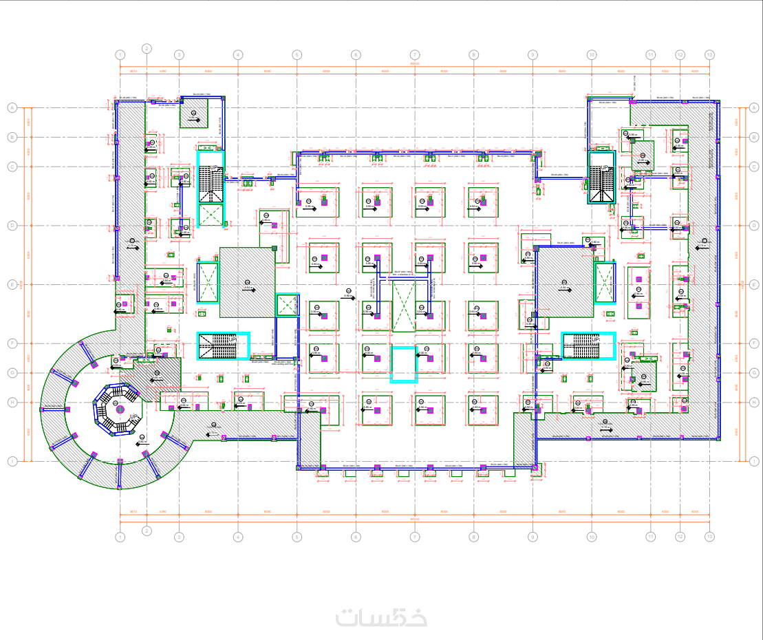 لوحات تنفيذية كاملة (Plans – Sections – Elevations) جاهزة للطباعة أو التسليم.