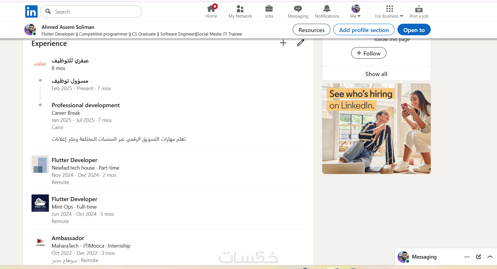 - طالب أو تبحث عن عمل: