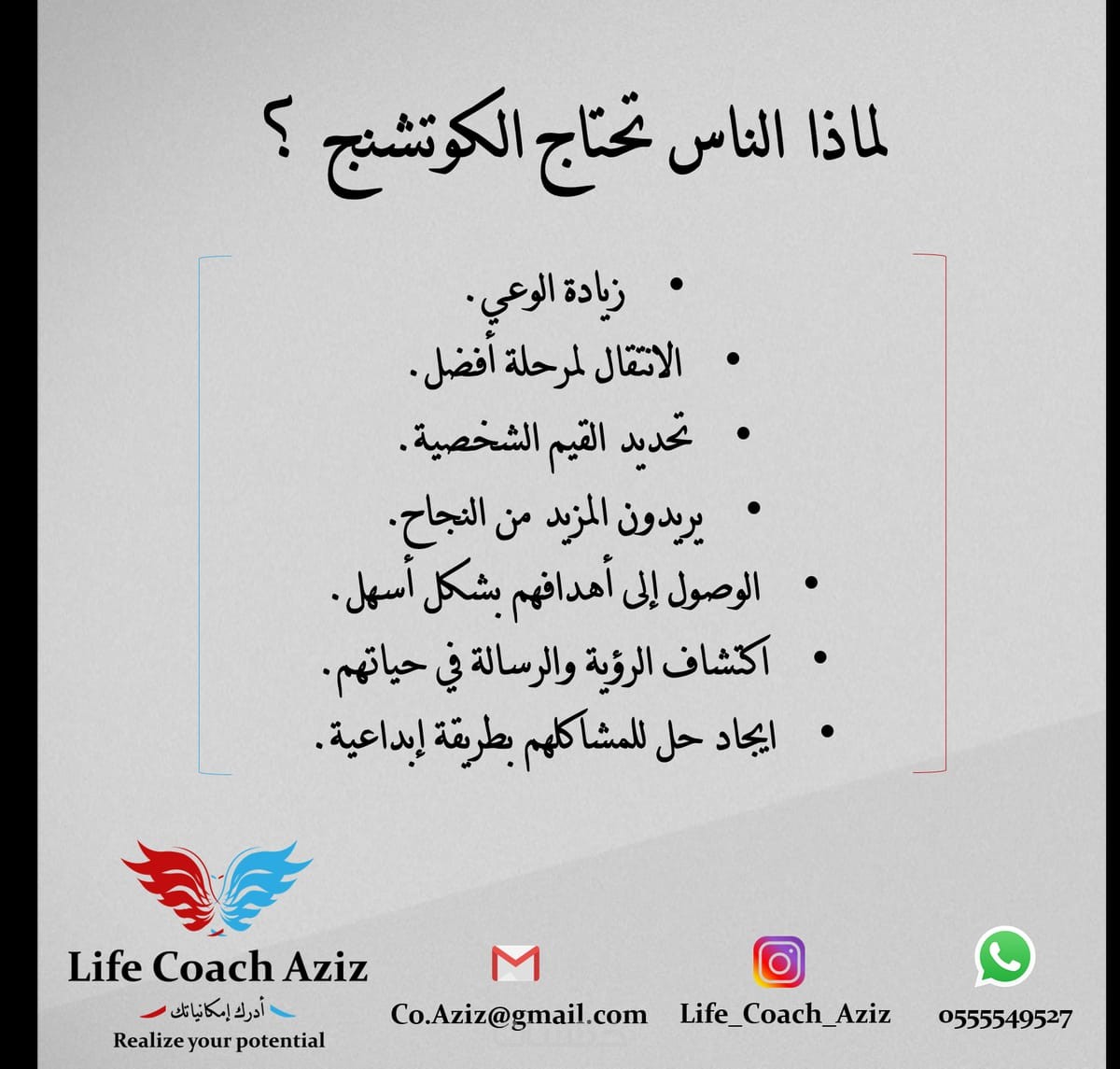 جلسة كوتشينج (Coaching): نركز فيها على حاضرك ومستقبلك، تحديد أهدافك بوضوح، ووضع خطة عمل واقعية لتطوير ذاتك.