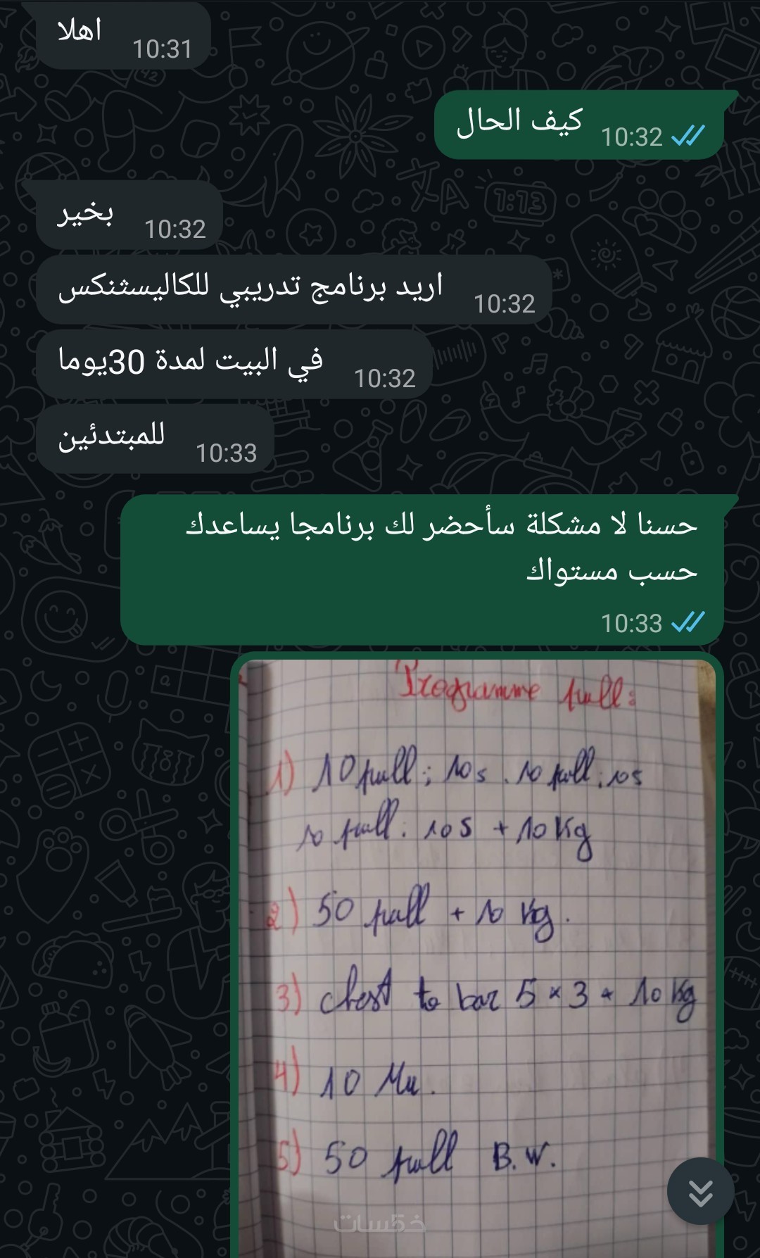 أقدّم لك برنامج كاليستنكس مخصص بالكامل حسب:
