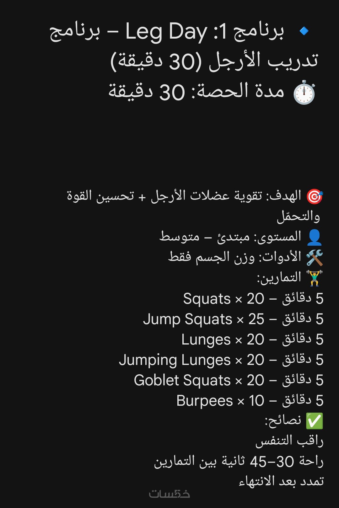 أقدّم لك برنامج كاليستنكس مخصص حسب مستواك الحالي (مبتدئ أو متوسط) وهدفك الرياضي، باستعمال وزن الجسم فقط وبدون معدات. البرنامج يكون واضح وسهل التطبيق