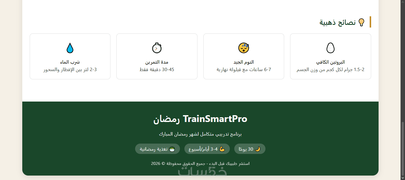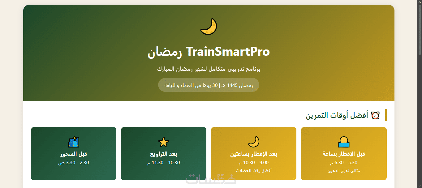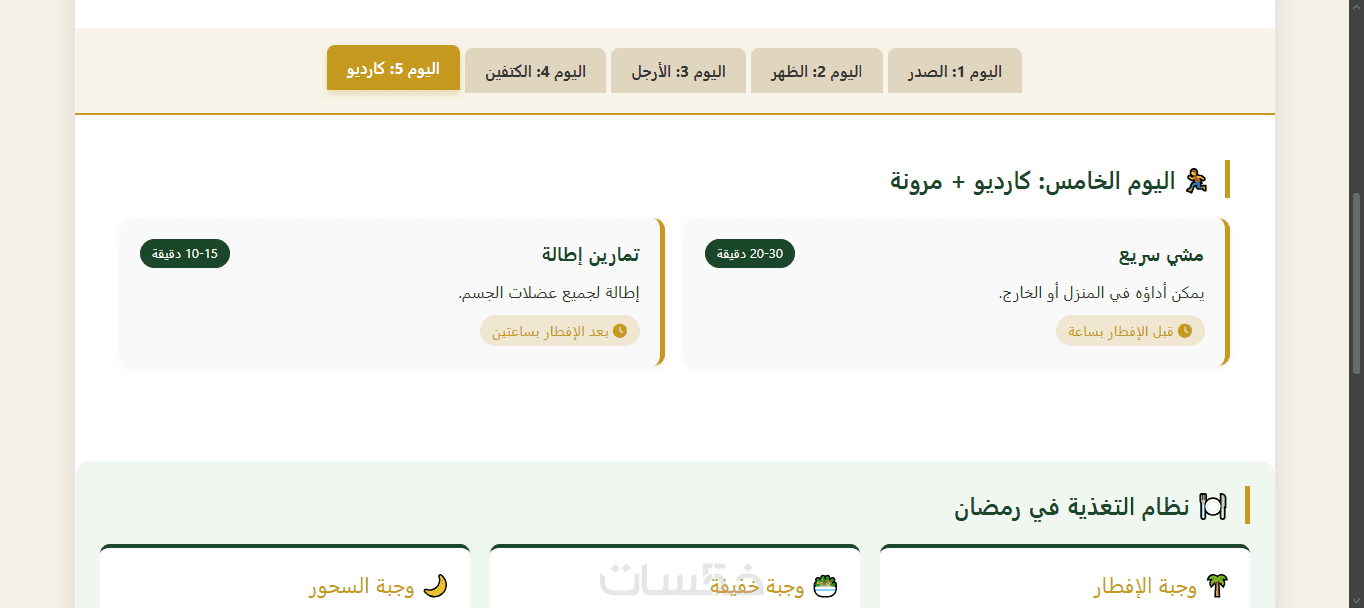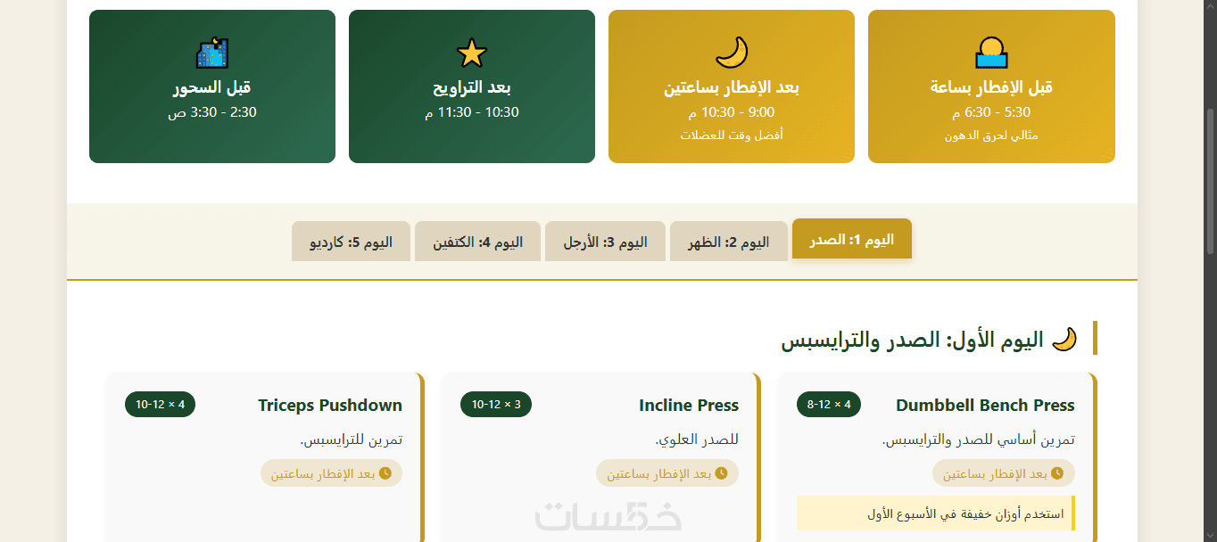 ي شهر رمضان، كثير من الناس يتوقفون عن التمرين بسبب الصيام والتعب، لكن مع برنامج صحيح تقدر تحافظ على لياقتك وحتى تطوّر جسمك بدون إرهاق.