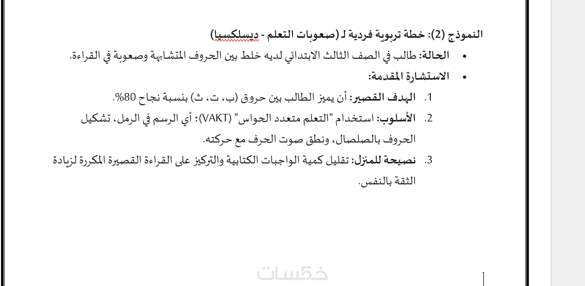 صعوبات التعلم: وضع خطط علاجية (أكاديمية ونمائية).
