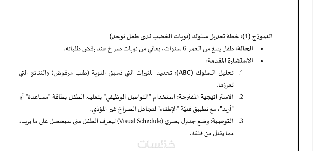 تعديل السلوك: تصميم جداول تعزيز وخطط لإطفاء السلوكيات غير المرغوبة.