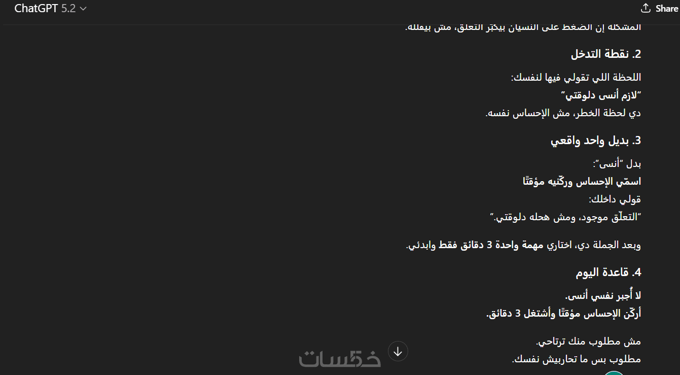ستنسخ هذا البرومبت البسيط في اي من برامج محادثات الذكاء الاصطناعي، وبالتالي يبدأ التفاعل معك بالاسئلة المحددة والاجابات الوجيزة والكافية لوضع حلول عملية وسريعة لك او لغيرك