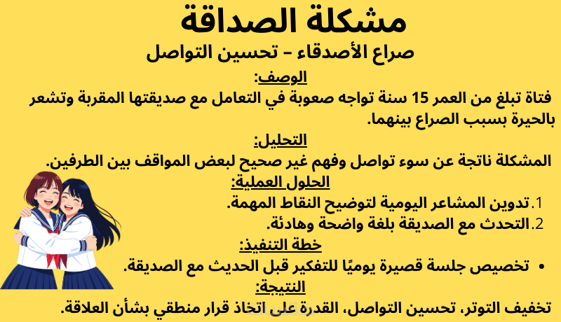 الهدف هنا هو تبسيط الأمور المعقدة للمراهق، بحيث يفهم المشكلة بشكل واضح دون الشعور بالارتباك.