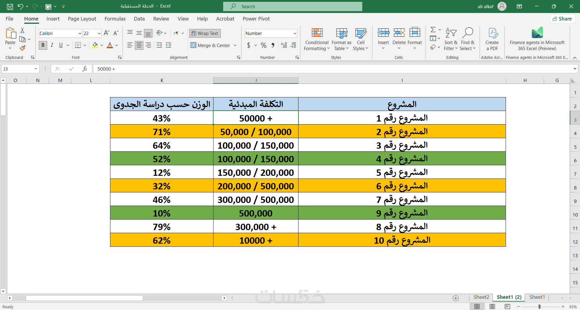 - مساعدتك في ترتيب نظام إكسل موجود لديك مسبقاً وإضافة المعادلات المناسبة لتحسين أدائه.