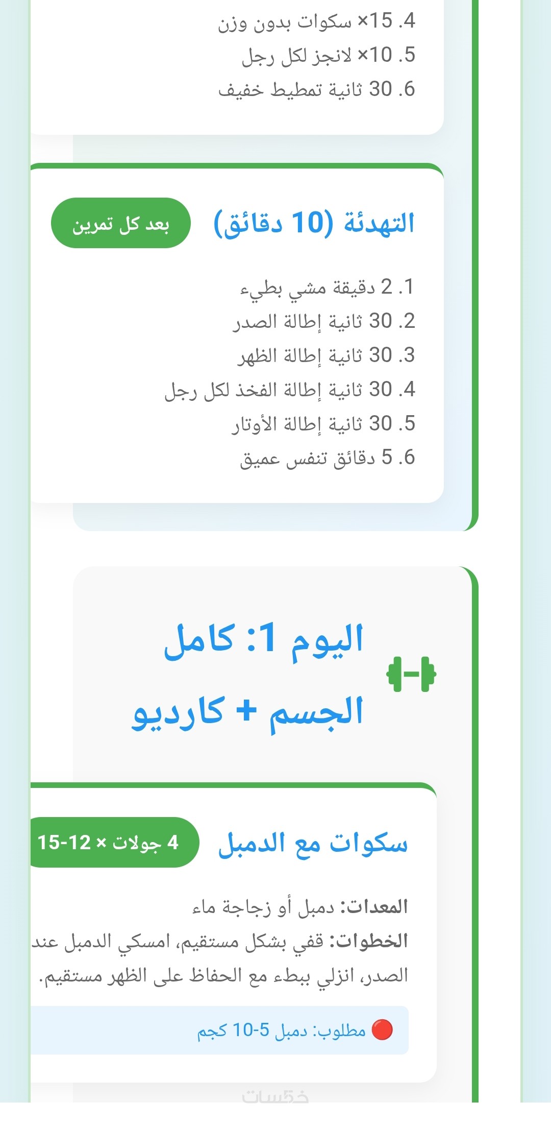 ملف PDF أو Word يحتوي على برنامج تدريبي مفصل لمدة أسبوع