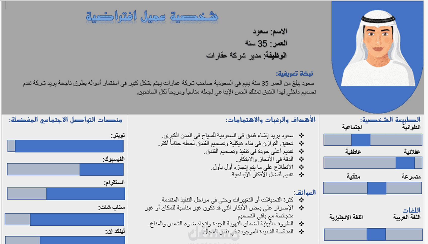 أقدم لكم هذه الخدمة التي تدرس شخصية عميل افتراض من حيث: