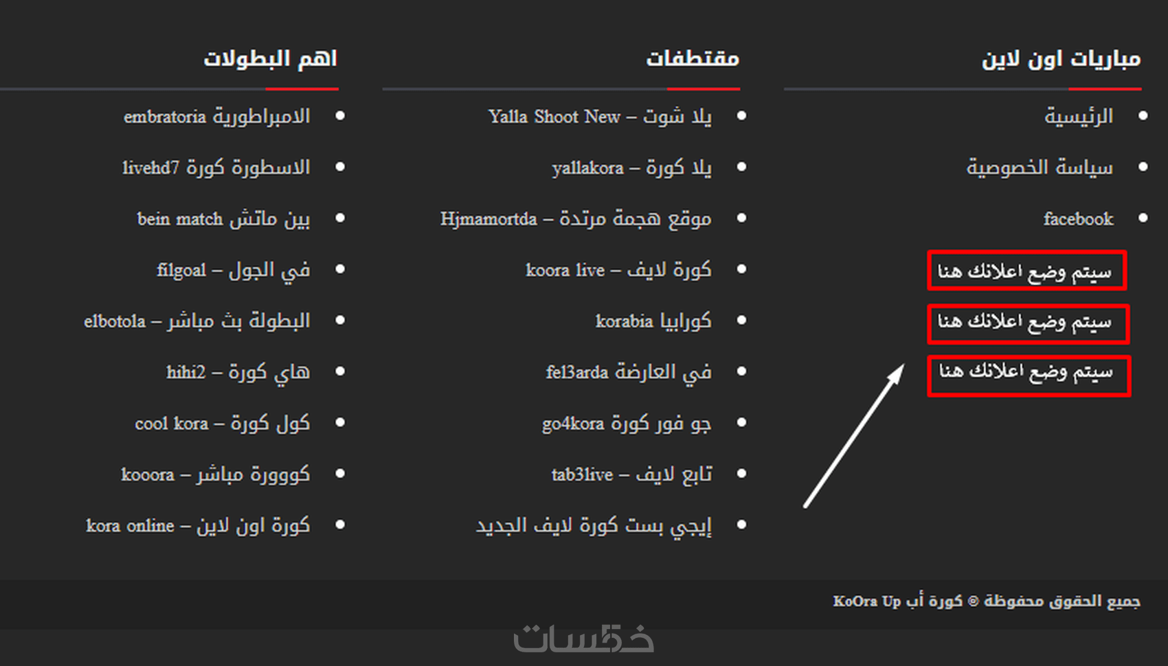 - مكان وضع الكلمة المستهدفة في الفوتر أسفل الموقع.