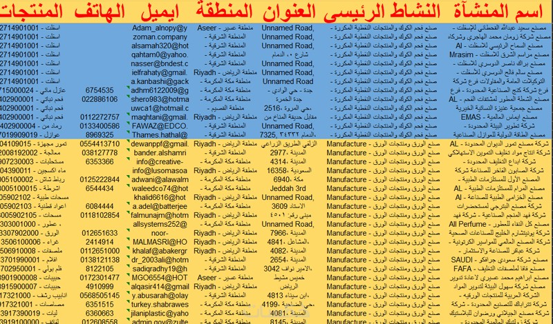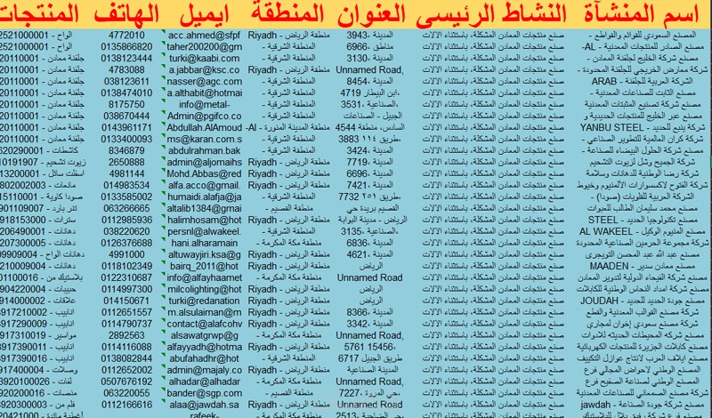 داتا تشمل: اسم بالعربي و EN/ إيميلات / أرقام / عنوان / منطقة إدارية / نشاط الرئيسي للشركة / منتجات + مصدر الرسمي لها