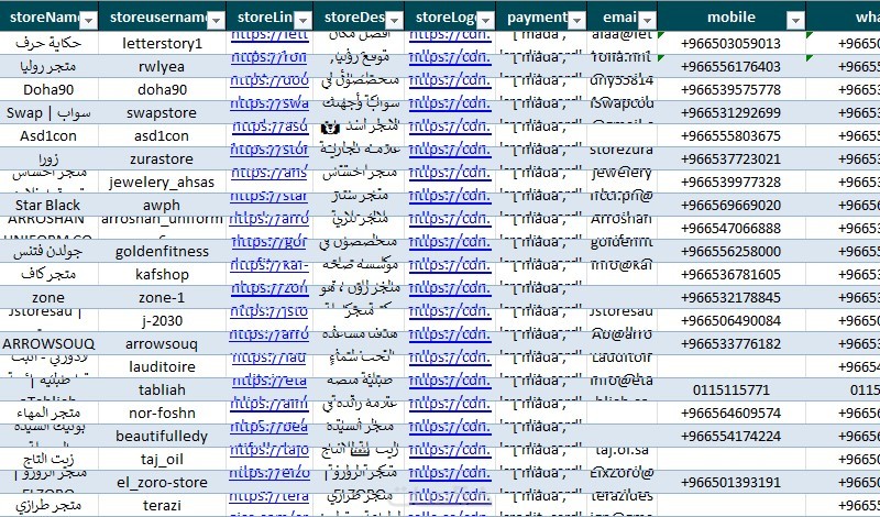 ملحوظة مهمة: بيانات هذه المتاجر قمت بسحبها بنفسي من المتاجر نفسها وليس من مصدر خارجي .