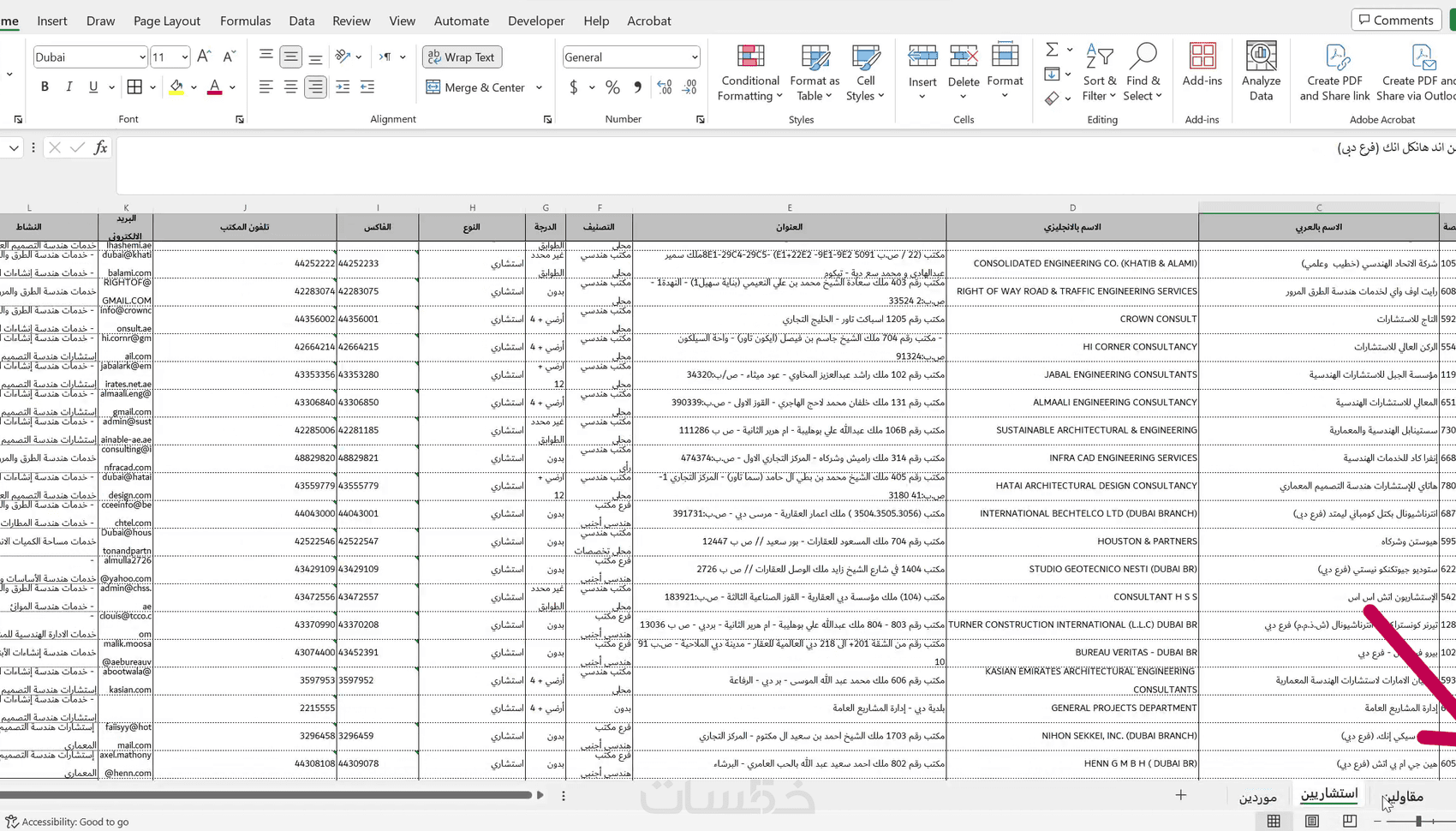 م - رقم الرخصة - الاسم بالعربي - الاسم بالانجليزي - العنوان - التصنيف - الدرجة - النوع - الفاكس - تلفون المكتب - البريد الالكتروني - النشاط