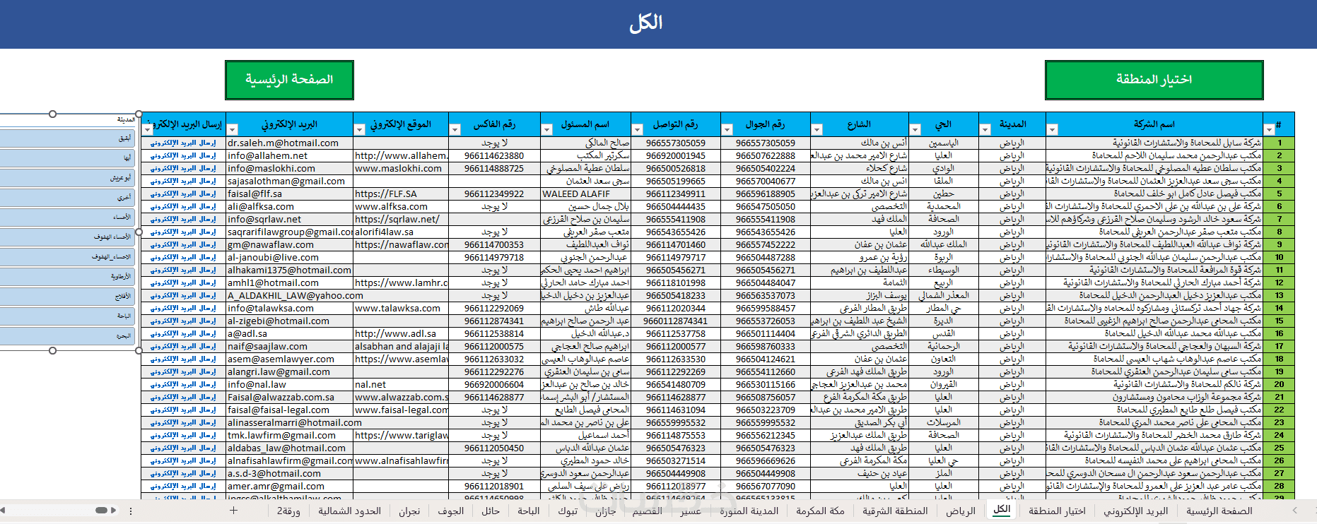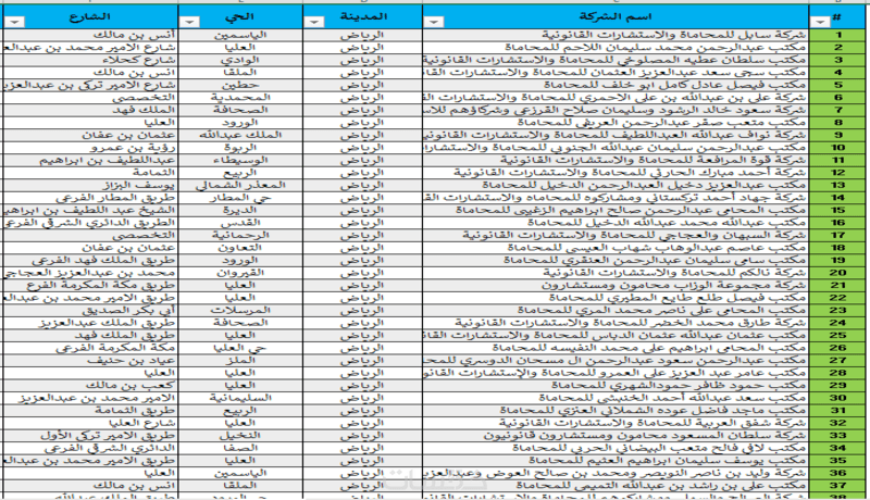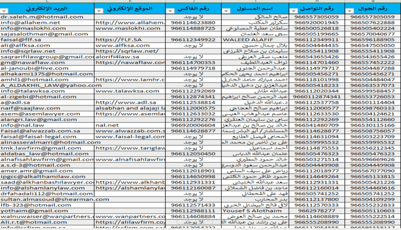داتا مكاتب وشركات المحاماة في المملكة العربية السعودية حيث يحتوي الملف علي التصنيفات التالية:-