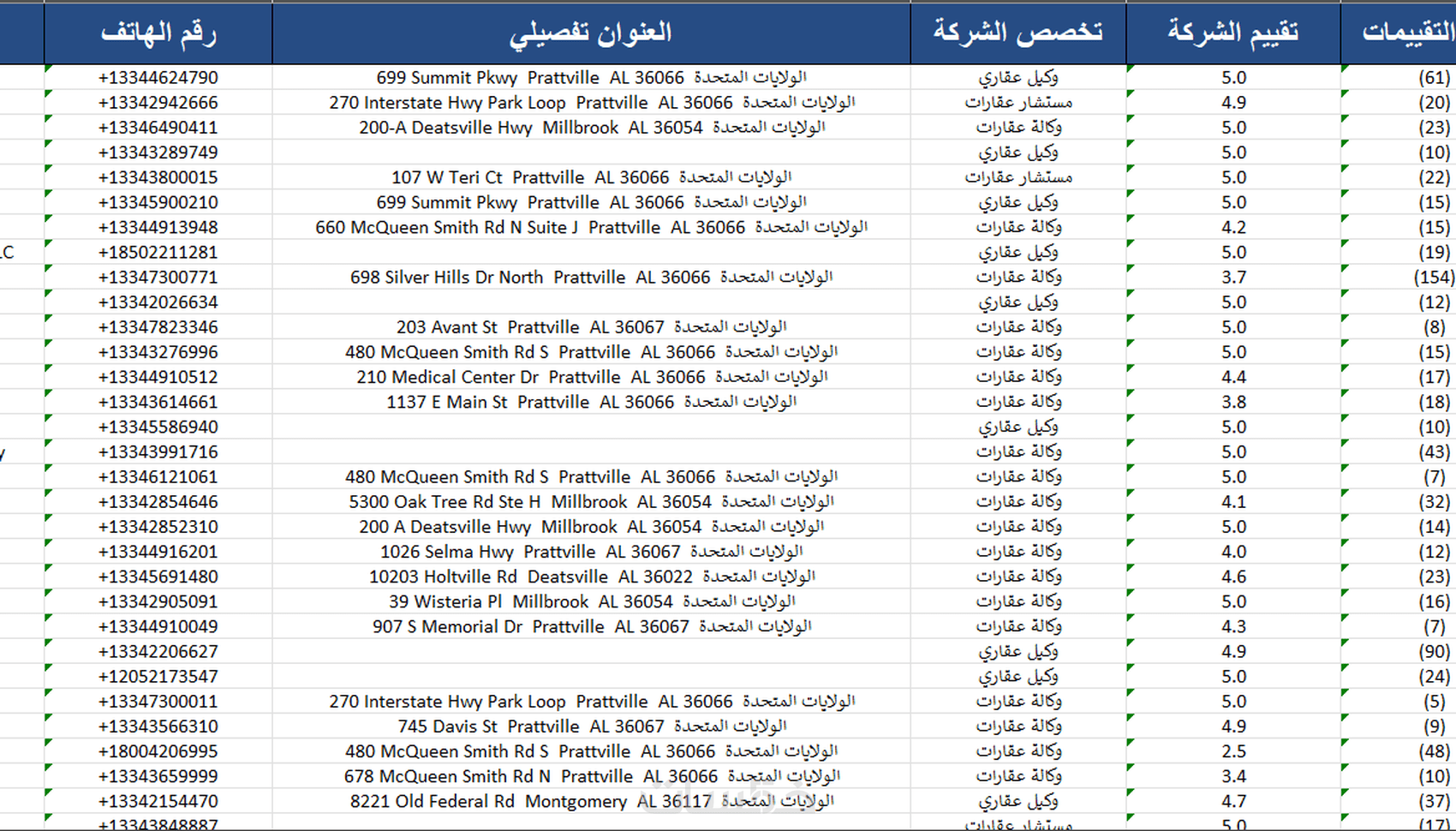 في هذه الخدمة سنقدم لكم دليل شامل لاكبر شركات العقارات في الولايات المتحدة الامريكية (ولاية ألاباما - ولاية نيويورك) وعددها 6800 شركة