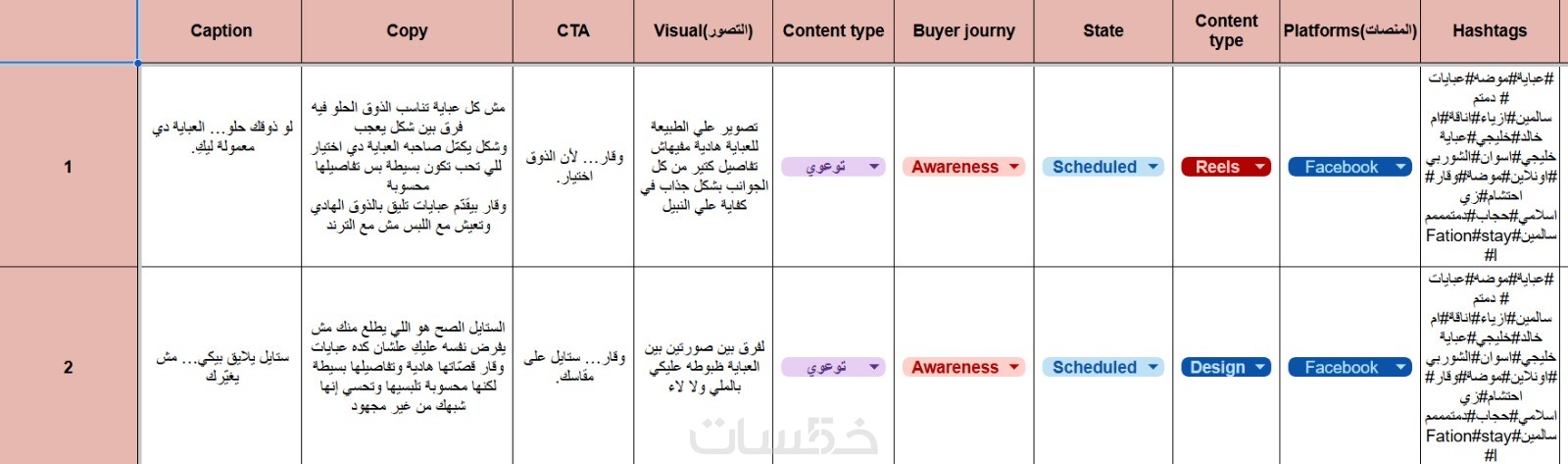 خطة محتوي ل 30 بوستات مختلفة بمحتوي مختلف