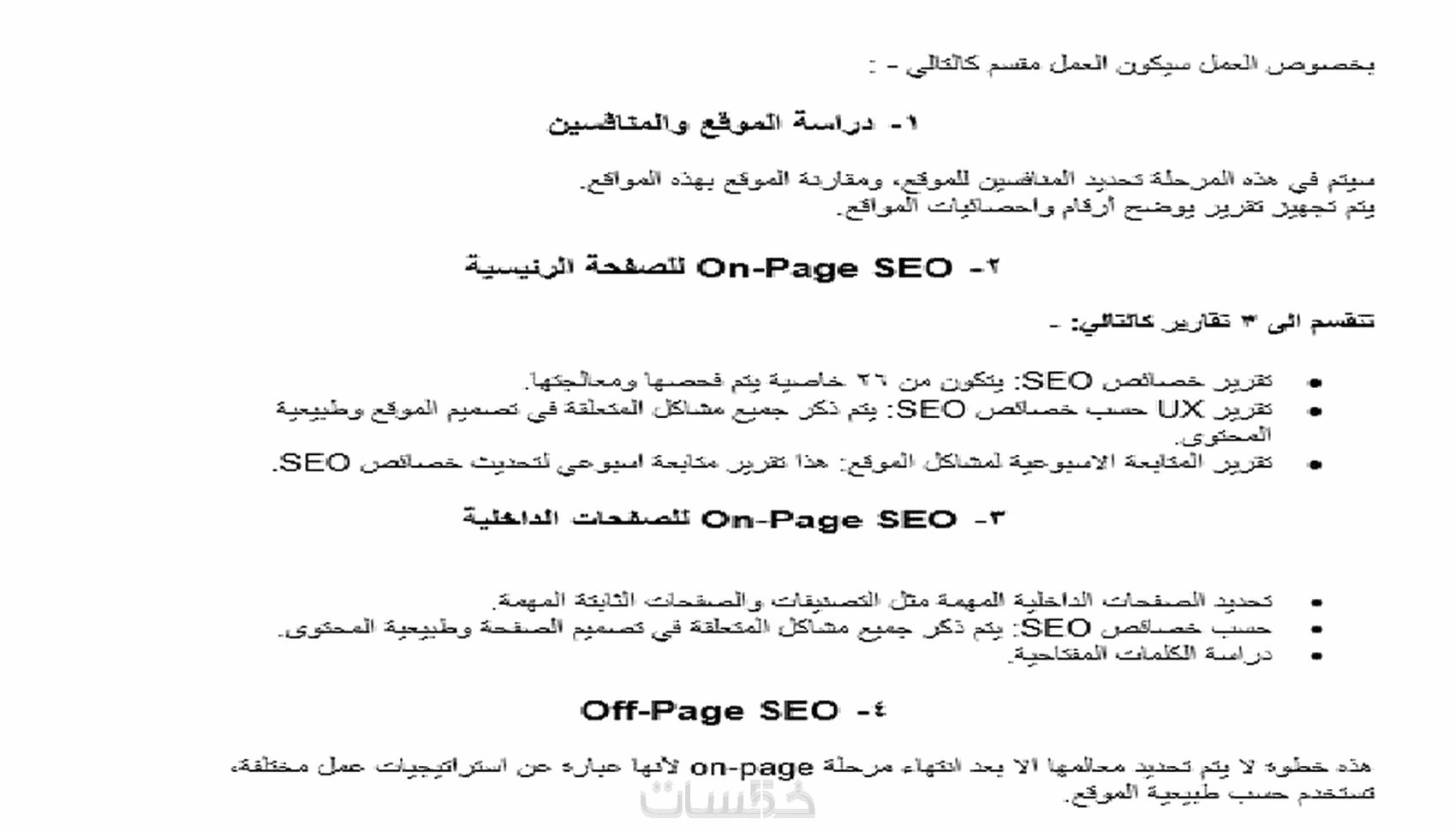 العمل علي جوانب التقرير الخاصة ب SEO واصلاحها مع الاشاره علي الموقع ب 4 باك لينك